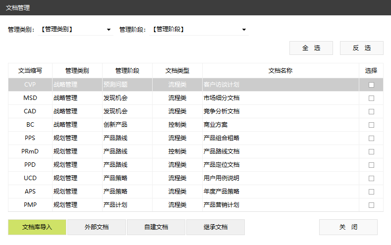 文档管理:内置专业产品管理文档库,让 PM 没有不会写的文档。并可以便捷的管理外部文档